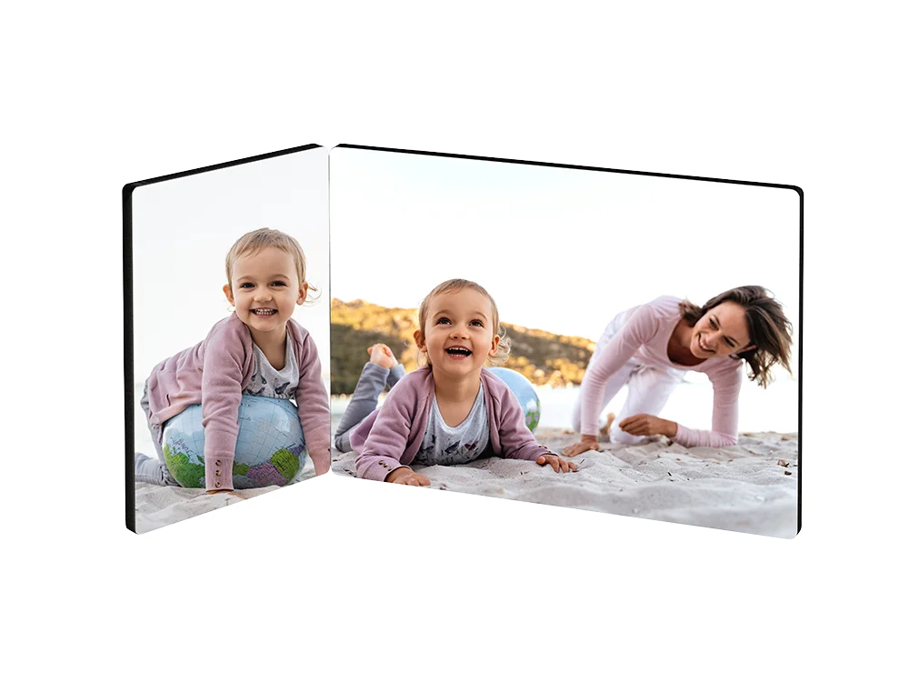 Du kannst entweder ein einziges Bild über beide Elemente strecken oder mehrere Fotos zu einer persönlichen Collage kombinieren. Die hochglänzende Oberfläche sorgt dabei für leuchtende Farben, brillante Details und beeindruckende Tiefenwirkung.