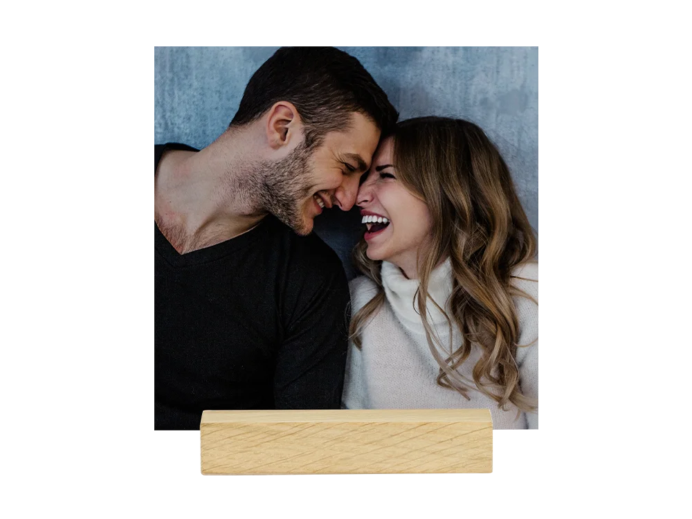 Der Holzaufsteller mit Ihren Lieblingsbildern eignet sich im quadratischen Format auch ideal als Geschenk für Familie und Freunde.