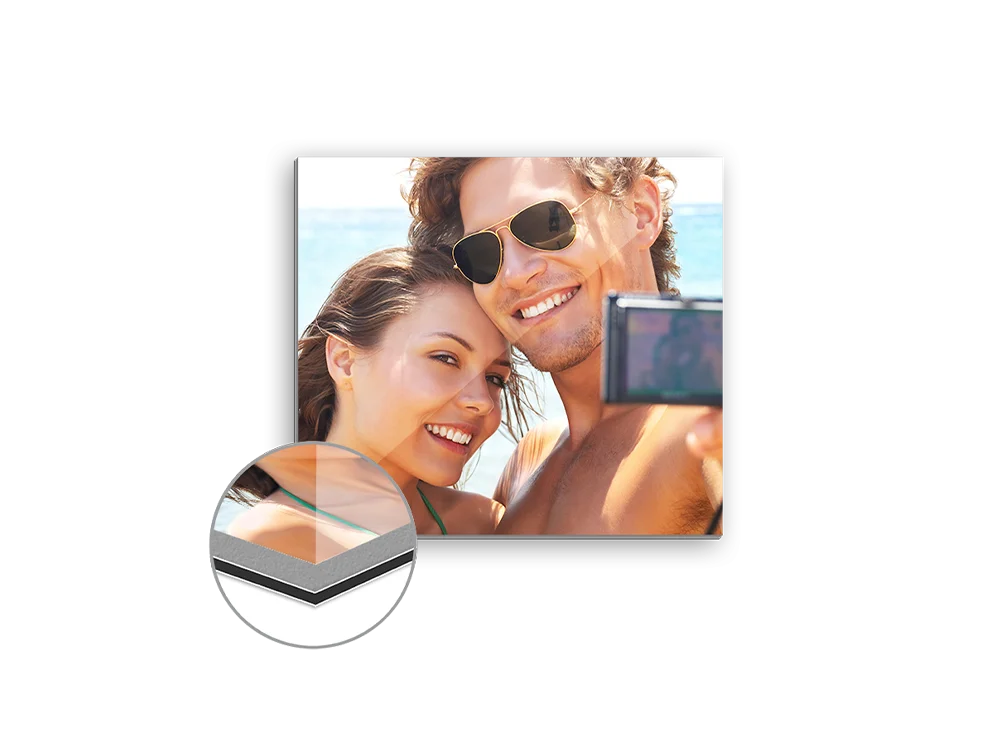 Mit Gallery-Print verschmelzen hochpoliertes Acrylglas und verzugfreies Aluminium zu einem modernen und dezenten Erscheinungsbild. Ihr Foto wird auf hochwertigem 250 g schwerem HP-Premium-Fotopapier mit modernsten 12-Farben-Druckern in beeindruckender Qualität gedruckt. Anschließend wird der Druck hinter 2 mm dickem Acrylglas kaschiert und mit einer 3 mm Alu-Dibond-Platte verstärkt. Diese stabile Alu-Dibond-Platte verleiht Ihrem Foto in Kombination mit dem hochglänzenden Acrylglas eine besonders elegante Ausstrahlung.